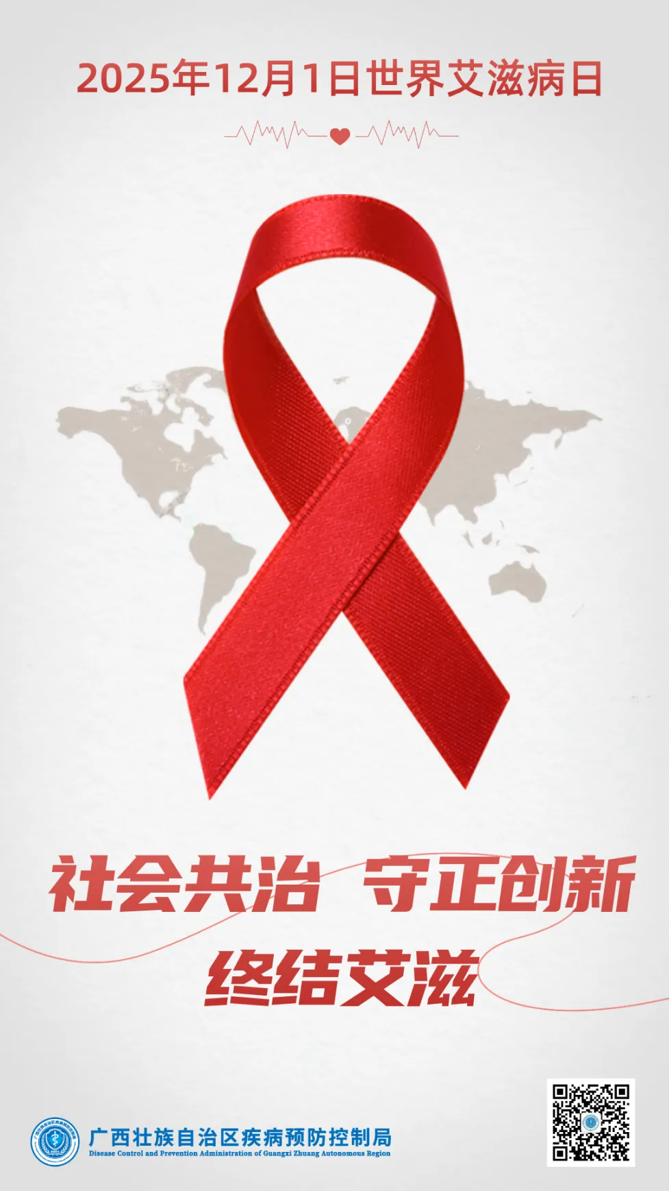 2025年12月1日是第38个“世界艾滋病日”,我国的宣传主题是“社会共治,守正创新,终结艾滋”,旨在深刻认识艾滋病防治工作的重要性和长期性,在总结、继承既往有效防治工作经验和典型做法的基础上,进一步倡导社会各界共同承担艾滋病防治责任,加强艾滋病防治措施的探索创新,推进艾滋病防治工作高质量发展。