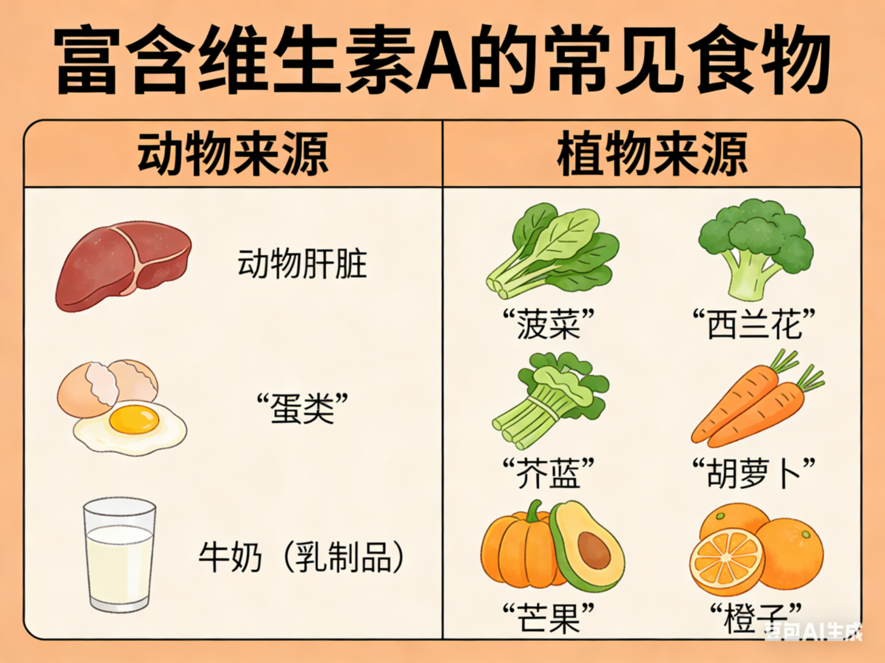 图2 富含维生素A的常见食物