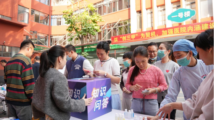 在自治区皮肤病医院(亭凉医院)活动现场举办了宪法知识有奖问答、健康服务咨询、中医药文化体验等宣传服务活动,工作人员向热心参与的病友及群众、医院职工做有关问题的咨询解答,并发放1100余份健康文创产品。