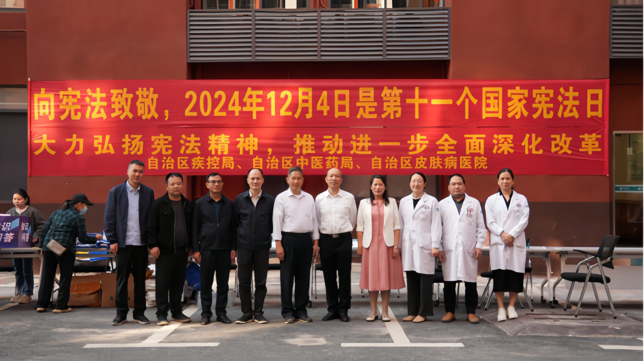 2024年12月4日是第十一个国家宪法日。为进一步弘扬宪法精神,自治区疾控局、自治区中医药局联合自治区皮肤病医院(亭凉医院)组织开展了“12·4”国家宪法日主题宣传活动。自治区疾控局、自治区中医药局相关处室,以及自治区皮肤病医院(亭凉医院)负责同志参加了本次活动。