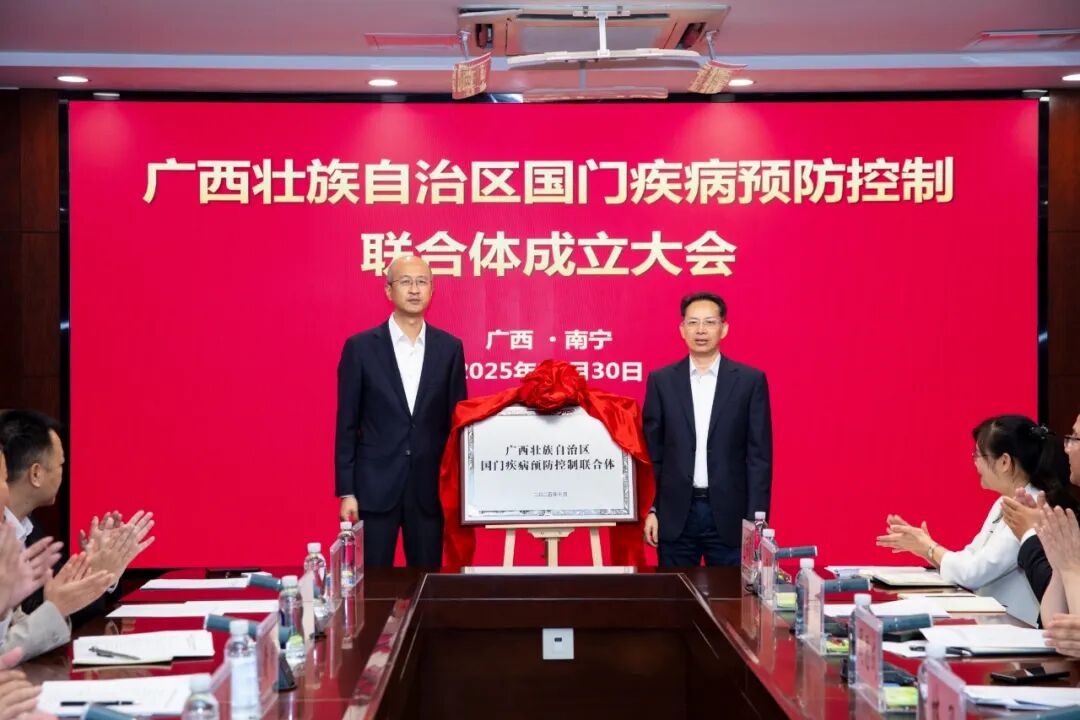 2025年10月30日,广西壮族自治区国门疾病预防控制联合体(以下简称广西国门疾控联合体)成立大会在自治区疾控中心隆重举行。自治区卫生健康委党组成员、副主任,自治区疾控局党组书记、局长林卫,自治区疾控中心党委书记、主任钟革共同为广西国门疾控联合体揭牌。