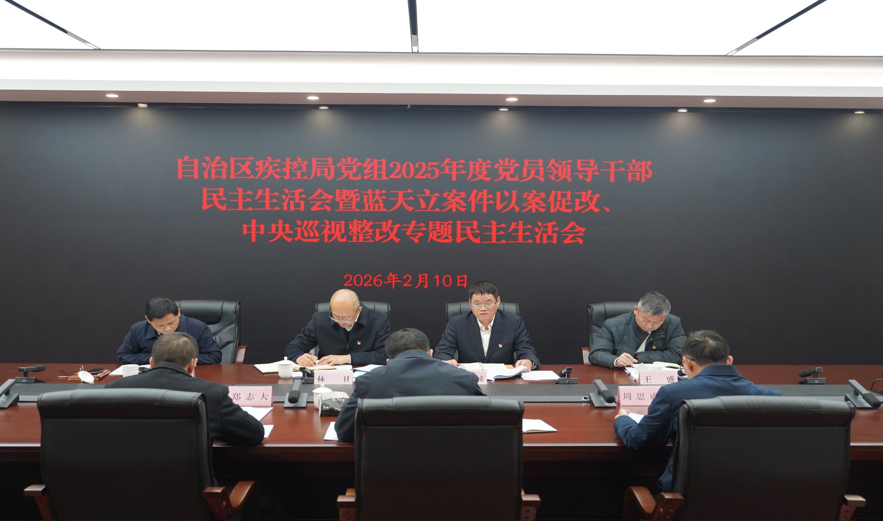 2月10日,自治区疾控局党组召开2025年度党员领导干部民主生活会暨蓝天立案件以案促改、中央巡视整改专题民主生活会,自治区卫生健康委党组成员、副主任,自治区疾控局党组书记、局长林卫主持会议并讲话。自治区纪委监委驻卫生健康委纪检监察组、自治区卫生健康委机关党委相关负责同志到会指导。
