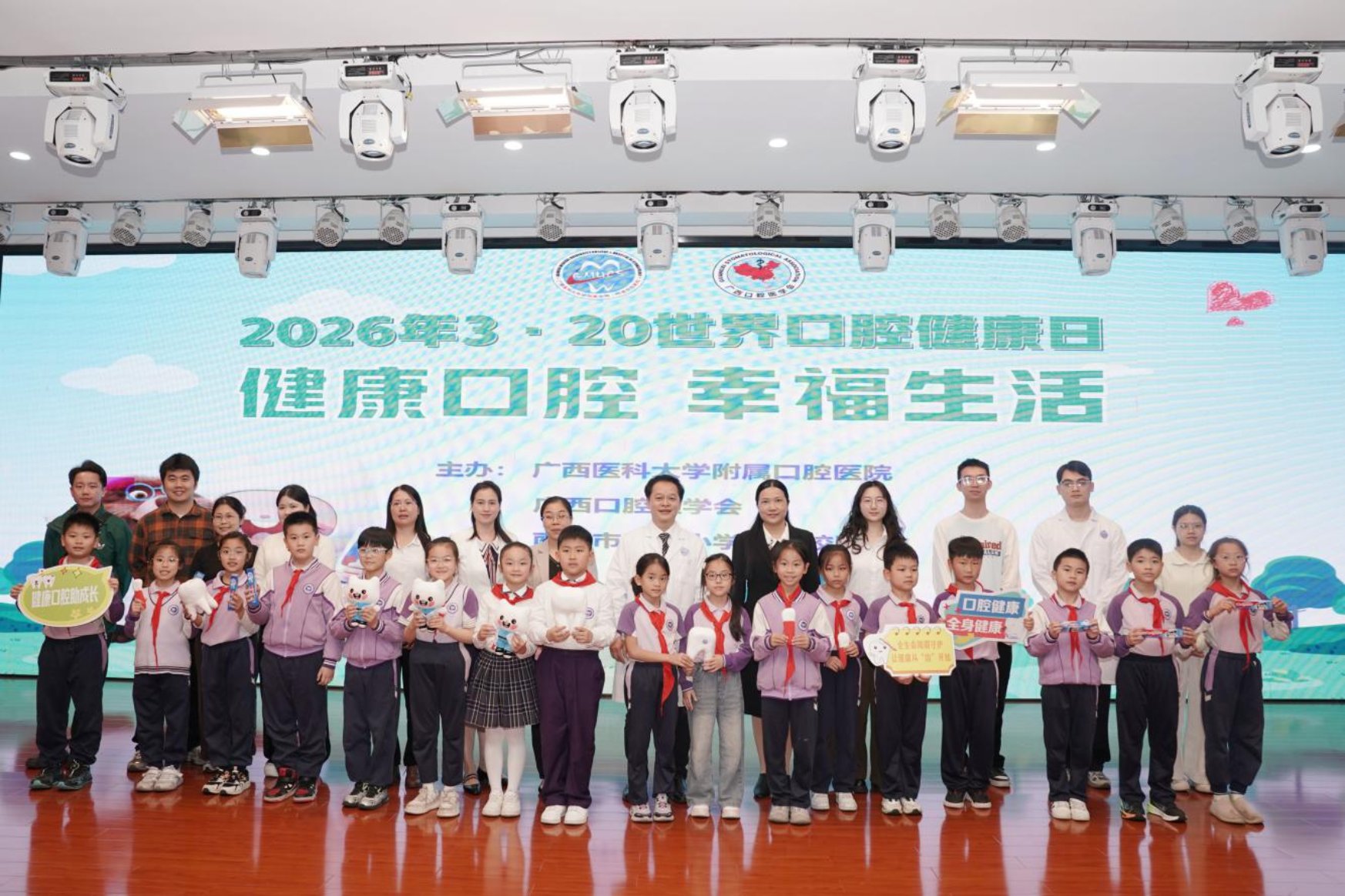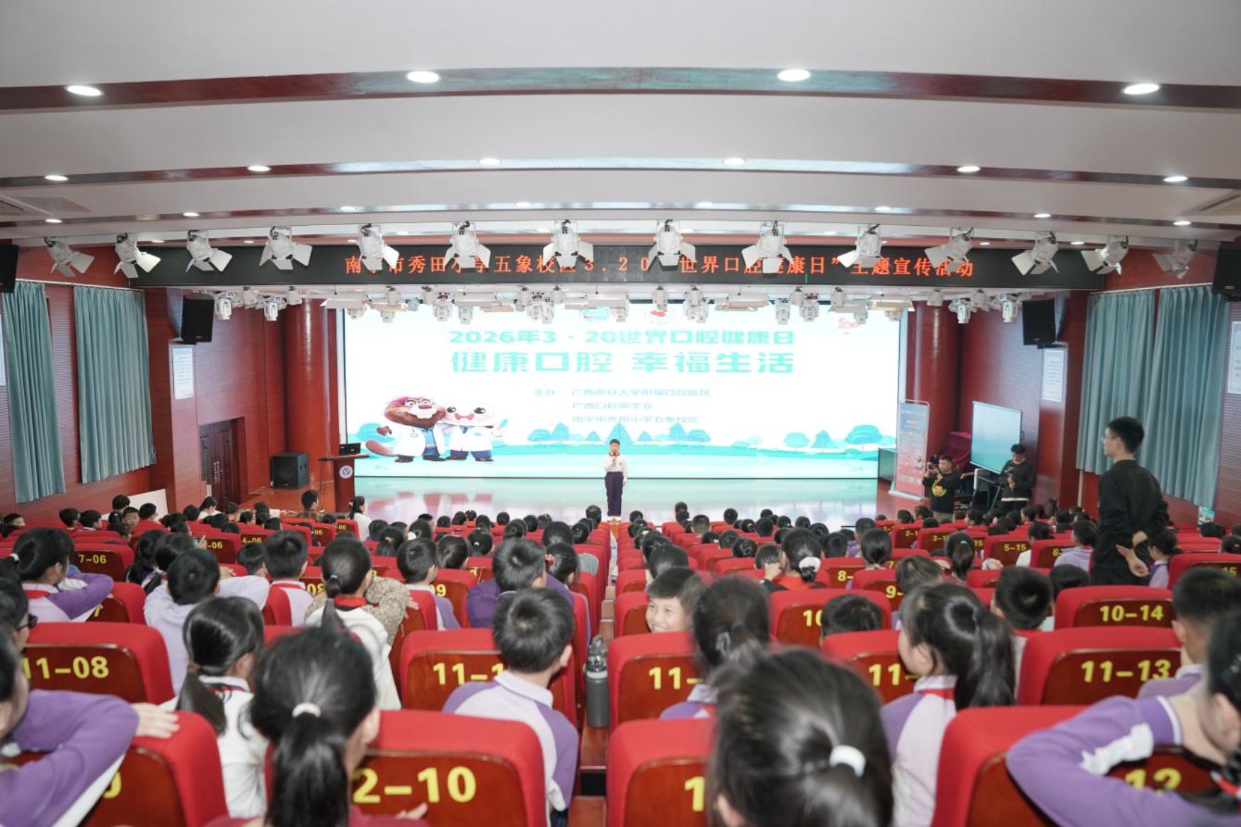 3月19日,在3・20世界口腔健康日来临之际,广西医科大学附属口腔医院、广西口腔医学会与南宁市秀田小学五象校区联合举办“健康口腔 幸福生活”主题宣传活动,通过科普讲座、现场示范、趣味竞赛等形式,为师生送上专业口腔健康知识,助力提升全区儿童青少年口腔健康素养。