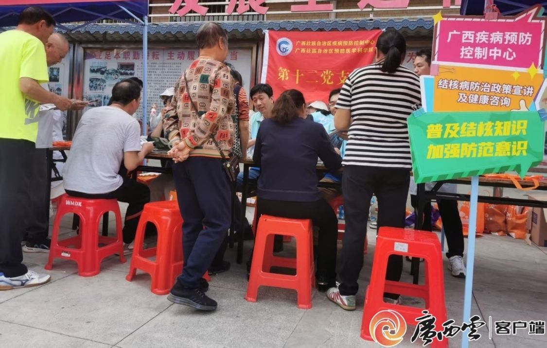 2025年3月,疾控部门工作人员在南宁市武鸣区红岭社区开展结核病防治线下宣传活动。自治区疾控局供图