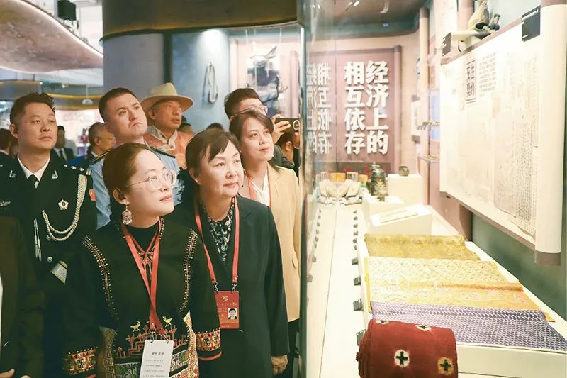 ▲ 2024年9月28日至10月1日,全国少数民族参观团在北京参观考察,感受新时代伟大成就。图为参观团在民族文化宫参观铸牢中华民族共同体意识文物古籍展,了解中华民族共同体形成发展的历史。民族画报社供图 陈涛/摄